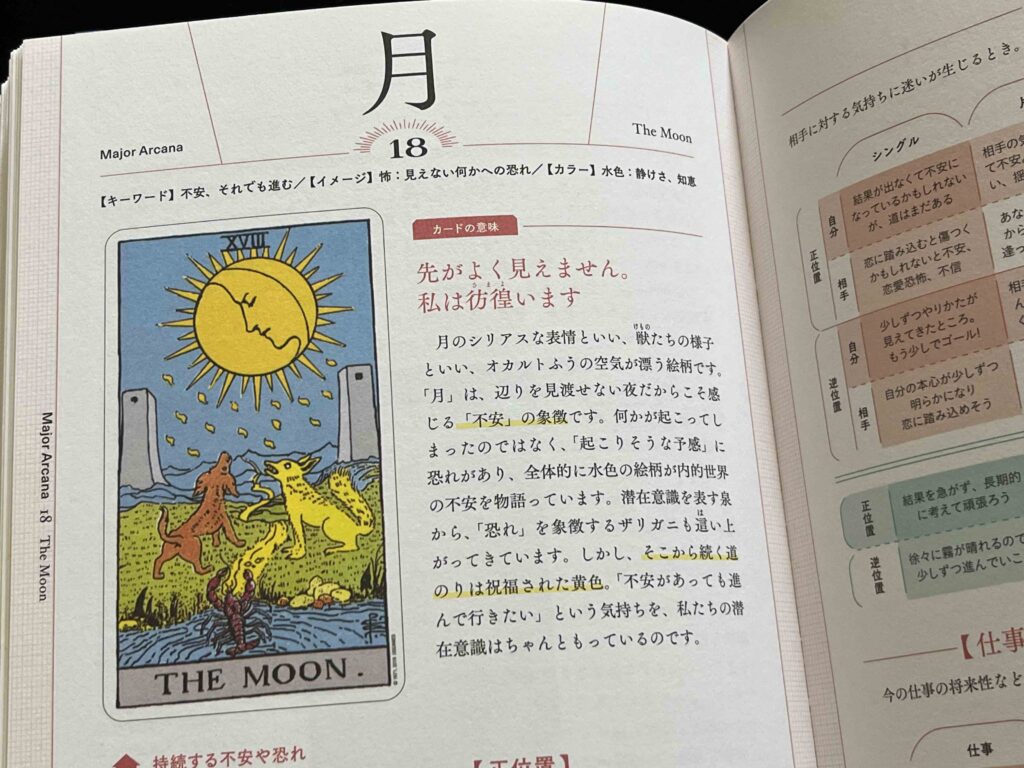 もちろん「正位置」と「逆位置」の両方の解釈が載っているので、本格的な占いをすることも可能です。