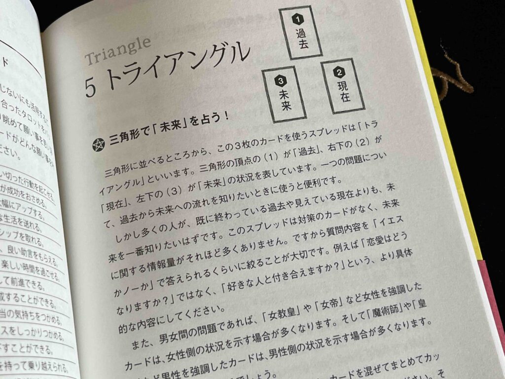 ワンオラクルからツーオラクル、特に3枚引きのトライアングルには、「実占例が豊富に掲載」されています。